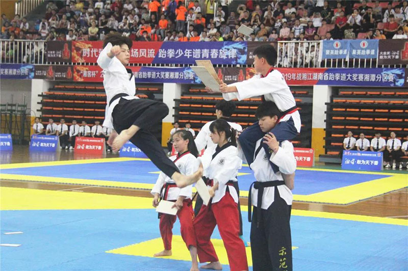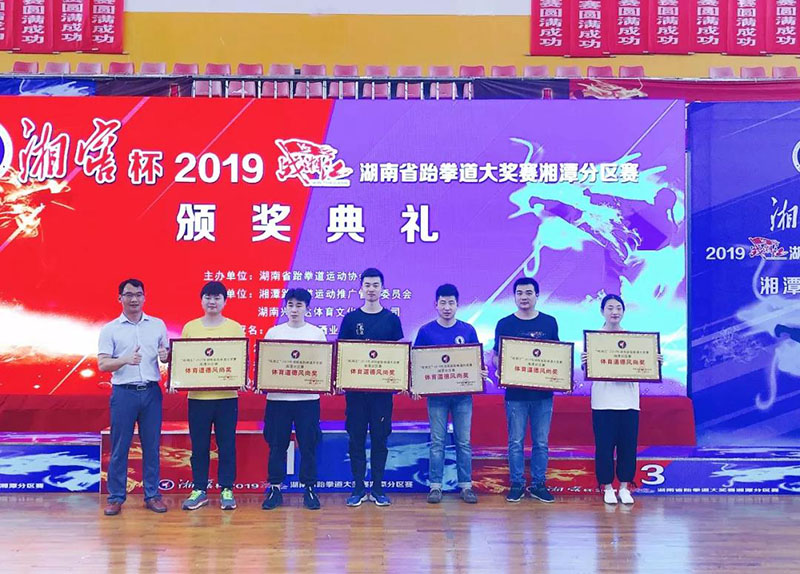 5月25日,“湘窖杯”2019年战湘江湖南省跆拳道大奖赛湘潭分区赛在湖南科技大学体育馆顺利落下帷幕。来自湘潭地区15支代表队的607名运动员在这里展开两天的精彩激烈角逐。