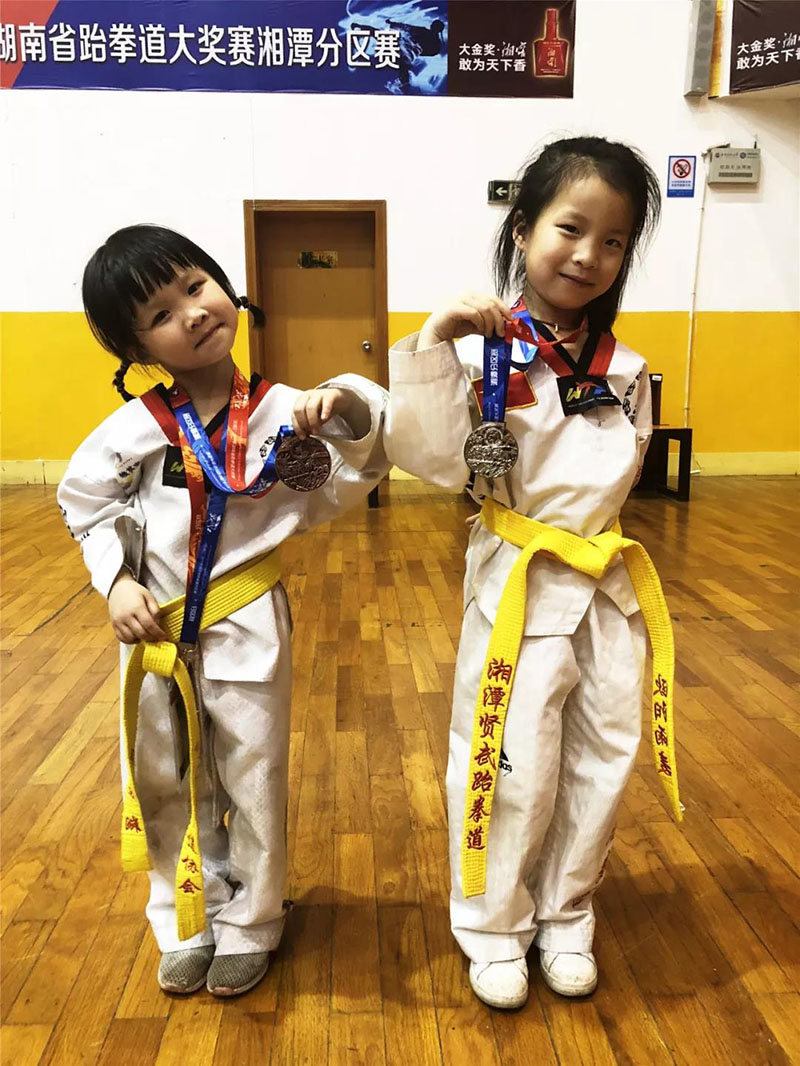 比赛的过程很重要,但比赛的结果对孩子们来说也有很重要的意义,失败了,我们可以说是挫折教育,成功了,那就是对孩子极大的肯定与鼓励。分享获得的荣誉会让孩子产生成就感,成就感的产生就是自信心产生的开始,自信心是孩子成长中必须具备和保持的一种积极的心态。比赛不仅是对学习成果的一种检验,更重要的是,它能促进培养孩子许多可贵的能力和品行。湘潭县贤武道馆的4岁小朋友何若凌在这次比赛中取得了女子幼儿组14公斤级的铜牌,小小的身体却有大大的能量,奖牌紧紧攥在手里久久舍不得放下,相信一颗冠军的心从此刻就已经在她幼小的身体里种下。