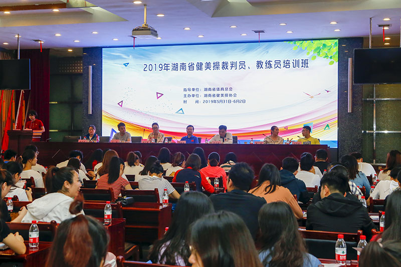 为推动全省健美操运动的发展,进一步提高教练员的教学水平和裁判员执裁能力,6月1日上午,2019年湖南省健美操教练员、裁判员培训班在湖南省体育局开班,来自全省健美操裁判员、教练员200余名学员参加了培训。
