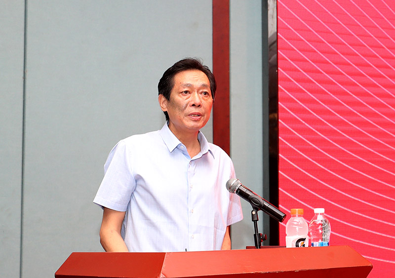 (图为省体育局一级巡视员、省篮协主席杨再辉在会上讲话。)
