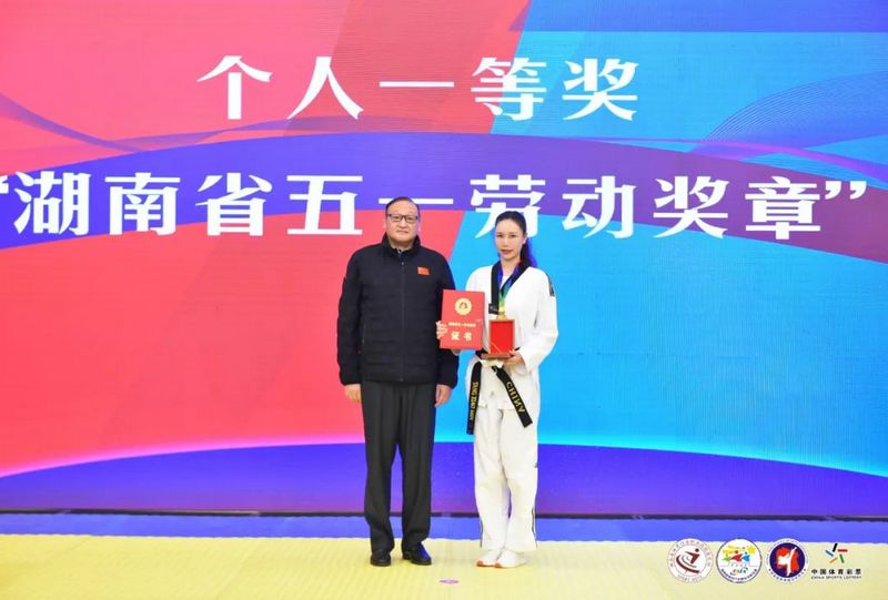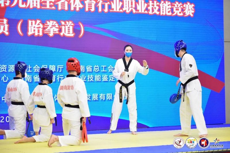 第九届全省体育行业职业技能竞赛社会体育指导员(跆拳道)项目为期两天,竞赛内容包含了专业知识和专业技能(跆拳道品势演练、腿法、体能等专业技能和跆拳道基础知识讲解和教学、健身指导技能等)。众多高水平选手的参与使得此次比赛竞争气氛浓厚,经过激烈角逐,最终长沙市代表队、岳阳市代表队获得团体一等奖,永州市代表队、湖南体育职业学院代表队、株洲市代表队获得团体二等奖,怀化市代表队一队、娄底市代表队、郴州市代表队、衡阳市代表队、湖南体育职业学院体育系代表队获得团体三等奖。个人赛上,来自湖南体育职业学院代表队的唐晓敏在众多选手中凭借扎实的技能功底和生动幽默的说课及科学系统训练方法技术讲解,赢得现场评委和参赛代表队的一致肯定,最终荣获个人一等奖,并由湖南省总工会授予“湖南省五一劳动奖章”荣誉称号。因在本次竞赛承办过程中的突出贡献,湖南省跆拳道运动协会、湖南星瑞体育发展有限公司也被组委会授予了“特别贡献奖”。