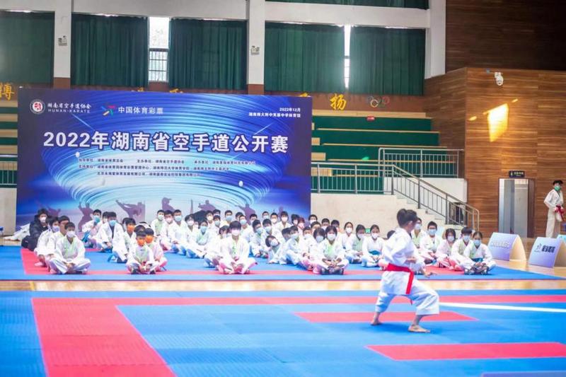 12月24日至25日,2022年湖南省空手道公开赛在湖南师大附中芙蓉中学体育馆顺利收官,来自湖南省内各地市12支队伍共百余名选手参赛。
