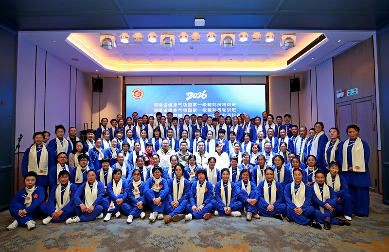 1月24日,由省健身气功协会主办的2026年湖南省健身气功国家一级裁判员培(轮)训班在长沙开班。来自全省各地、高等院校的健身气功骨干及爱好者110余人参训。