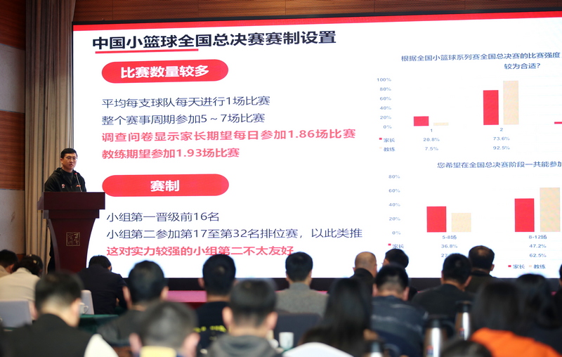 会议期间,正式发布《中国小篮球系列活动指导意见(征求意见稿)》并进行重点解读。山西篮协、江苏篮协、广东篮协、湖南篮协,以及四川天府新区青少年运动健康协会、江西上饶市柒九体育、南京聚星体育等,在2025年篮球技能等级评定项目中成绩突出的评定机构代表,分别就小篮球赛事和篮球技能等级评定开展情况、推广经验和遇到的挑战进行分享交流。
