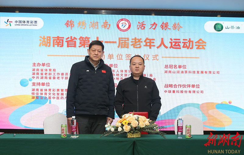 新湖南客户端2月28日讯(记者 胡旻)2月28日上午,以“锦绣湖南 活力银龄”为主题的湖南省第十一届老年人运动会(简称“老运会”)赞助单位签约仪式在长沙举行。会上,湖南山润油茶科技发展有限公司与组委会正式签约成为本届老运会总冠名单位,中联重科股份有限公司、卡尔美体育用品集团有限公司等多家企业签约成为战略合作伙伴单位。