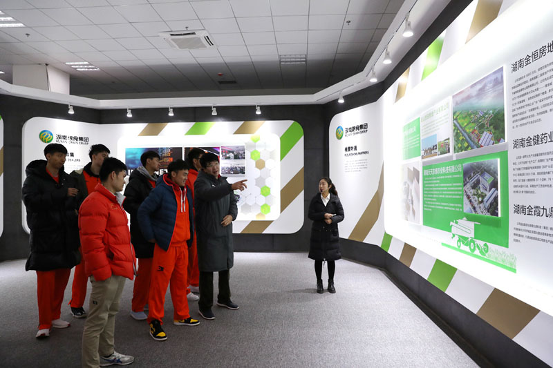 (图为湖南金健米业男子篮球队参观湖南粮食集团。)