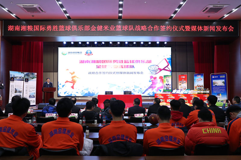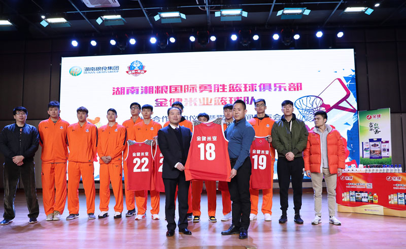 据了解,湖南粮食集团和湖南勇胜篮球俱乐部签订了为期5年的合作协议,今后广大球迷在主场就将正式看到冠名之后的湖南湘粮国际勇胜篮球俱乐部金健米业男子篮球队了。目前,球队正在紧锣密鼓地的备战即将到来的NBL四强赛,全新阵容即将起航,与各位球迷阔别已久的湖南勇胜男篮也即将披挂着带有金健米业字样的球衣征战于各个赛场。金健,加油!湖南,必胜!