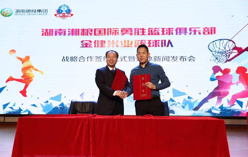 2017年12月15日,湖南勇胜篮球俱乐部有限责任公司与湖南粮食集团在长沙召开战略合作新闻发布会,双方签订战略合作协议,宣布湖南粮食集团正式成为湖南勇胜篮球俱乐部的战略合作伙伴,并正式将球队更名为湖南湘粮国际勇胜篮球俱乐部金健米业男子篮球队。这标志着体育湘军与粮食湘军的强强联手,也首开先河地的创造了省内职业篮球俱乐部与优势支柱产业整合发展的新模式。