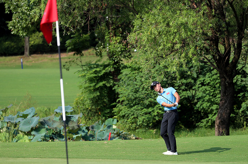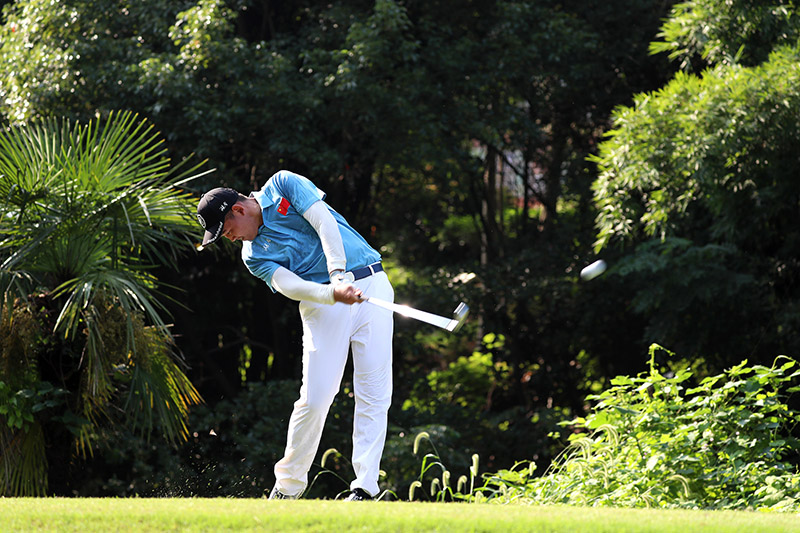 省高尔夫球协会秘书长、湖南省长年方高尔夫球队领队罗理林带领教练汤成诚,参赛运动员陈顾新、陈逸龙、梁恩旗、李林强、吴典晁在出征仪式上庄严宣誓。“挑战自我,突破极限。竞赛勇夺金牌,文明展示风采。”誓言铮铮气势冲天,这支在高尔夫项目上平均年龄最为年轻的队伍,已然做好了争夺奖牌的准备。