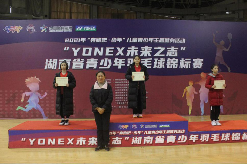 12月13日,由湖南省体育局、湖南省教育厅主办,湖南省羽毛球乒乓球运动管理中心、永州市文化旅游广电体育局承办,永州市全民健身服务中心、永州市体育学校、湖南省体育彩票管理中心永州分中心协办的2021年“奔跑吧·少年”儿童青少年主题健身活动“YONEX未来之志”湖南省青少年羽毛球锦标赛在永州体育馆圆满落下帷幕。湖南省羽毛球乒乓球运动管理中心副主任王艺霖、田卿,永州市文化旅游广电体育局副局长孙耀梅等领导出席了颁奖仪式。