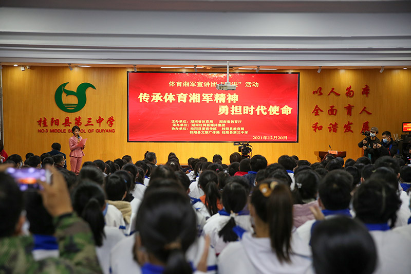 12月20日上午,体育湘军宣讲团“四进”活动走进了郴州市桂阳县第三中学电教室,展开了桂阳三中站的宣讲活动。