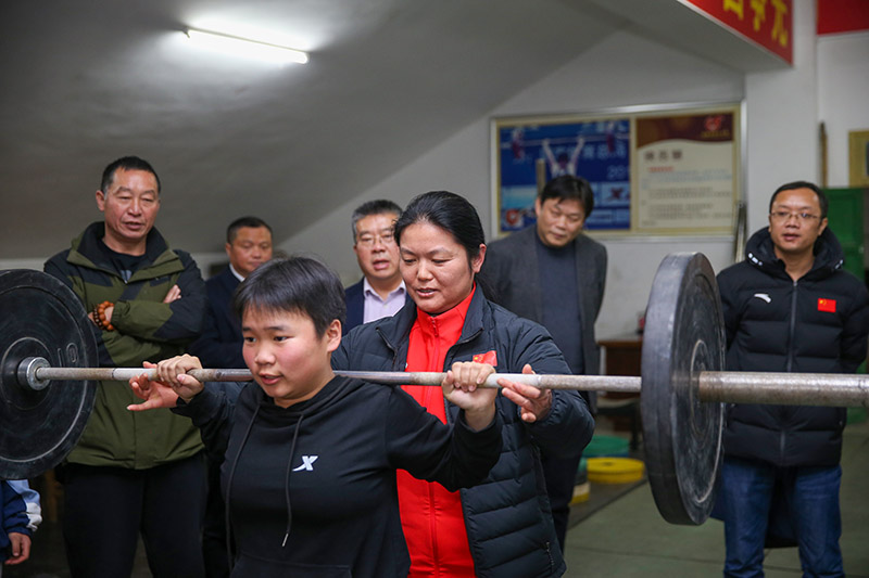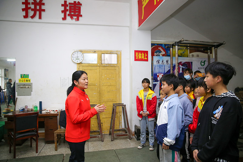 在当日的宣讲结束后,体育湘军宣讲团还走进了桂阳三中举重训练馆,看望了正在馆内训练的小队员们。周继红、向艳梅现场观看了小队员们的训练情况,对技术动作进行了细致指导,并为小队员们的训练和发展给出了自己的建议。