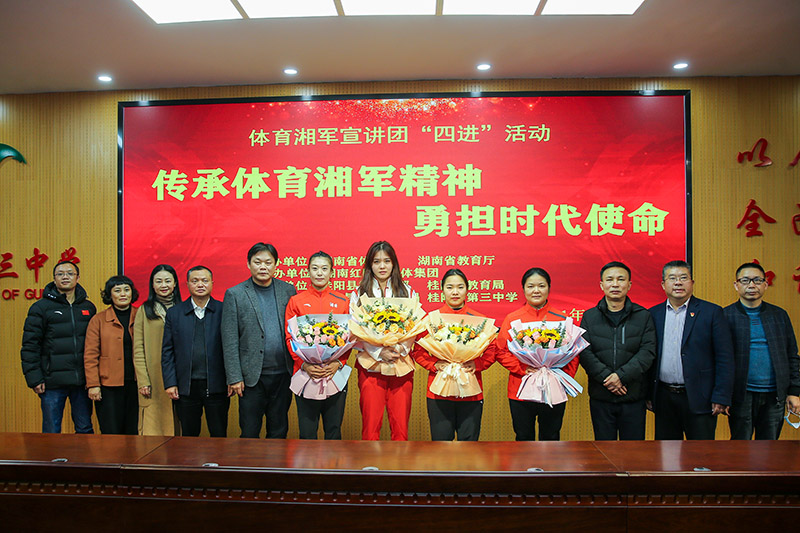在桂阳三中站的宣讲结束后,体育湘军宣讲团“四进”活动还将于12月21日在益阳市安化县东坪镇萸江学校继续进行,伦敦奥运会女子举重冠军王明娟、伦敦奥运会羽毛球女双冠军田卿、中国女子水球队队长熊敦瀚将来到安化,讲好湖南体育故事。