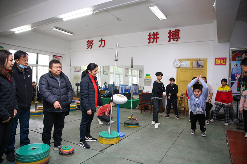 周继红、向艳梅现场观看了桂阳三中举重队的训练情况。