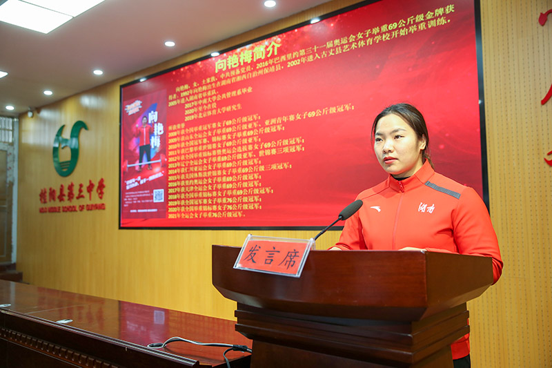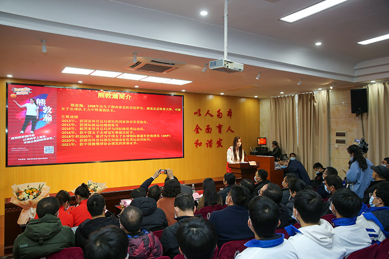 里约奥运会女子举重冠军向艳梅、三届亚运会皮划艇冠军周玉、中国女子水球队队长、全运会女子水球冠军熊敦瀚,国家级举重教练、湖南省举重队教练员周继红走进校园,与师生们近距离互动。