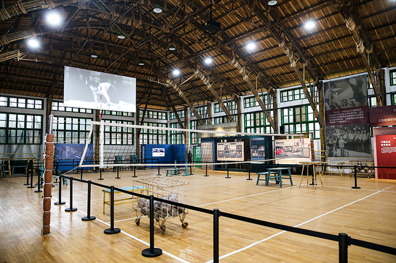 复原重建的郴州竹棚训练馆,复原了中国女排上世纪80年代在郴州训练、生活的环境面貌。
