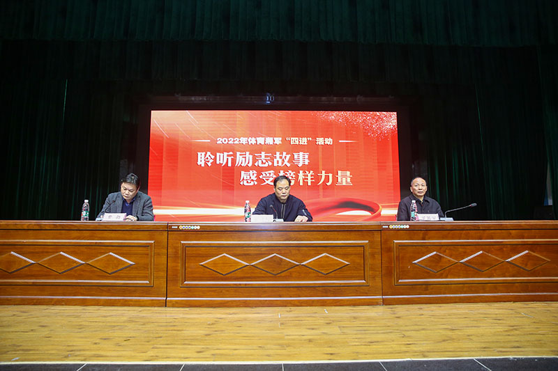 2月17日下午,体育湘军“四进”活动暨“聆听励志故事 感受榜样力量”宣讲会在湖南体育职业学院大礼堂举行。省体育局党组成员、副局长张连标出席并传达学习党的二十大精神。湖南体育职业学院院长罗器宇及省体育局有关处室、运动项目管理中心的领导,运动员、教练员、领队、医疗科研人员,共500多人参加。