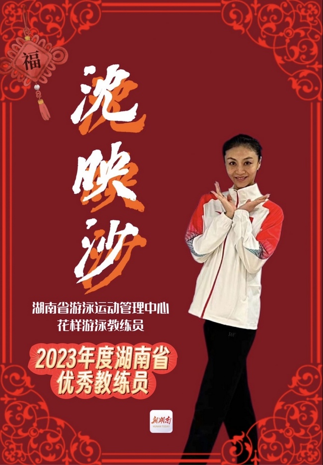 晚会上,2023年度湖南省优秀教练员揭晓,他们分别是——花样游泳教练员沈映沙、体操教练员陈伟、蹦床教练员李伦、攀岩教练员徐培芳、攀岩教练员张艳丽、赛艇教练员宋良友、羽毛球教练员丁楠、举重教练员祁希慧、女子手枪教练薛保全、跆拳道教练员晏营。