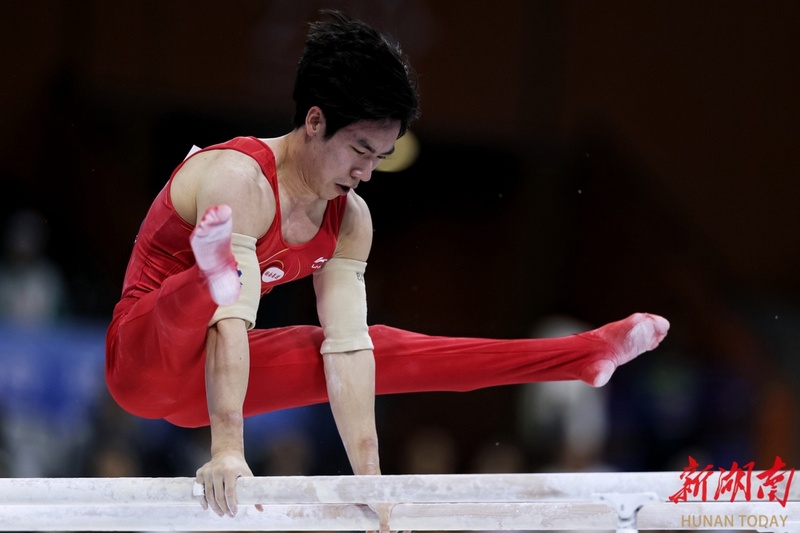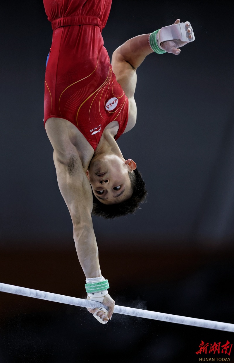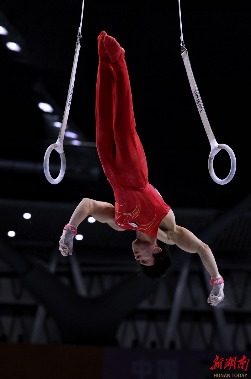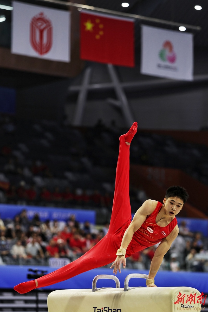 湖南日报·新湖南客户端肇庆11月12日讯(记者蔡矜宜 摄影傅聪)今晚,第十五届全运会体操男团决赛在广东肇庆上演巅峰对决,最终,由张博恒领衔的湖南高速体操队以327.024的总分斩获一枚银牌,江苏队以1.933分的优势实现卫冕。