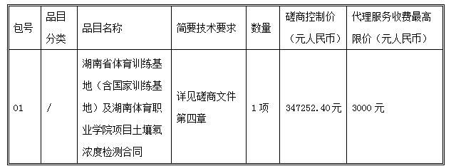 1、采购项目名称:湖南省体育训练基地(含国家训练基地)及湖南体育职业学院项目土壤氡浓度检测。