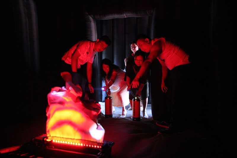(图为浓烟帐篷体验。)