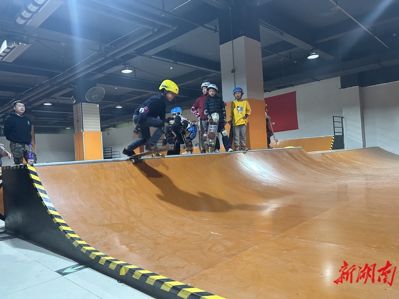 今年1月底,丰源滑板俱乐部(娄底店)青少年选手在比赛中。