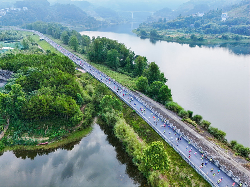 比赛中,参赛选手们个个精神饱满、步履矫健,一路你追我赶,奋力拼搏。在纵情奔跑较量的同时,还共同沉浸式体验湘西独特风情,感受历史人文气息。