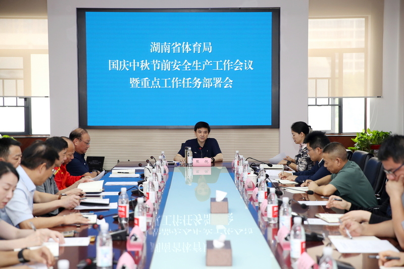 9月28日,湖南省体育局召开国庆中秋节前安全生产工作会议暨重点工作任务部署会。会议对省体育局系统国庆中秋节期间安全生产工作,办好“湘超”联赛、备战参赛第十五届全运会、筹备第十六届全运会,以及湖南省足球青训中心建设等重点工作作出部署安排。省体育局党组书记熊倪主持会议并讲话。