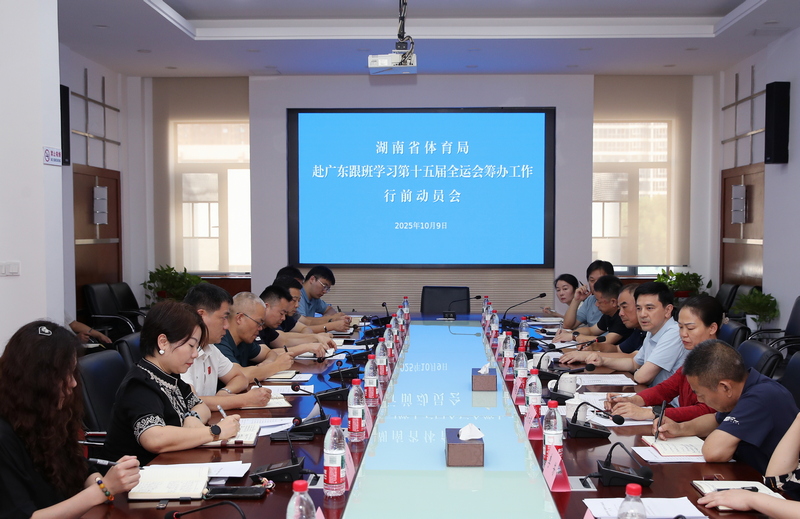 为做好2029年第十六届全运会筹办工作,经省体育局党组研究同意,决定派出10名同志赴广东跟班学习第十五届全运会筹办工作。10月9日下午,省体育局召开跟班学习行前动员会,省体育局党组书记熊倪、局长罗双全出席会议,有关局领导、部分处室主要负责同志及全体跟班学习人员参加。