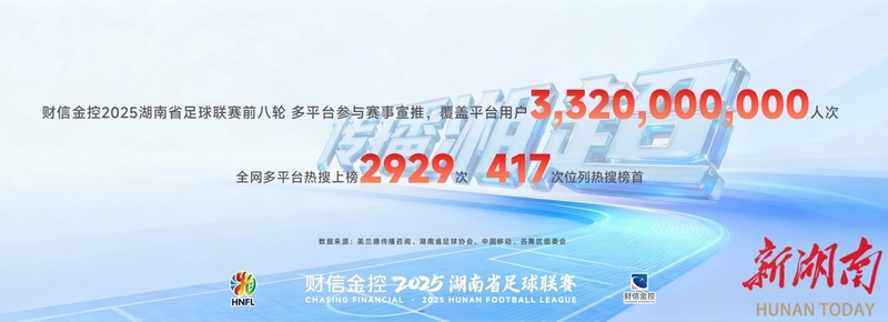 前八轮56场绿茵争锋,总进球数141个、116.375万人现场观赛、累计接待游客3454.2万人次、带动消费总额71.59亿元、线上宣推覆盖用户33.2亿人次……11月3日,财信金控·2025湖南省足球联赛(简称湘超)媒体见面会在长沙举行。