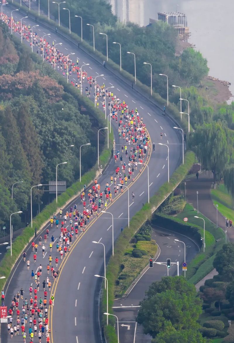 2023年10月29日,参赛选手奔跑在潇湘大道。当天,长沙马拉松赛开跑。湖南日报全媒体记者辜鹏博田超摄