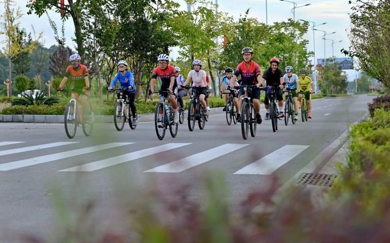 9月16日,骑行爱好者在洞口县雪峰街道城东大道骑行。滕治中摄