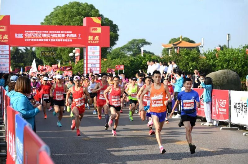 2021年5月9日,长株潭三市首次联动,2021湘江马拉松赛万名选手开跑。湖南日报·新湖南客户端记者田超唐俊摄