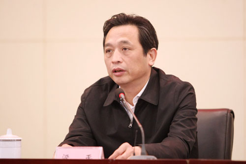 (图为省委组织部部务委员、省委巡视工作领导小组成员梁平讲话。)
