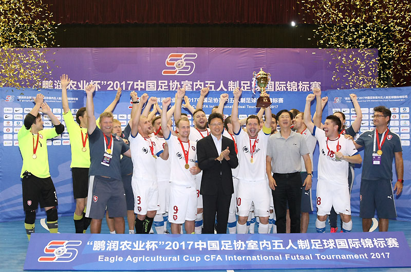 为期三天的“鹏润农业杯”2017中国足协室内五人制足球国际锦标赛,6月25日晚在长沙理工大学落幕。在最后一场比赛中,捷克队以5比3战胜中国队,三战2胜1平积7分不败战绩夺得冠军,英格兰队2胜1负积6分屈居亚军,马来西亚1胜1平1负积4分名列第三,而以年轻球员为主的中国队三战全负积分垫底。