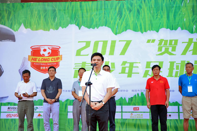 7月14日下午,2017“贺龙杯”青少年足球邀请赛开幕式在长沙贺龙体育中心附场举行。湖南省体育局副局长熊倪、长沙市体育局党委书记李文格、长沙市体育局副局长李德安等领导出席了本次活动。