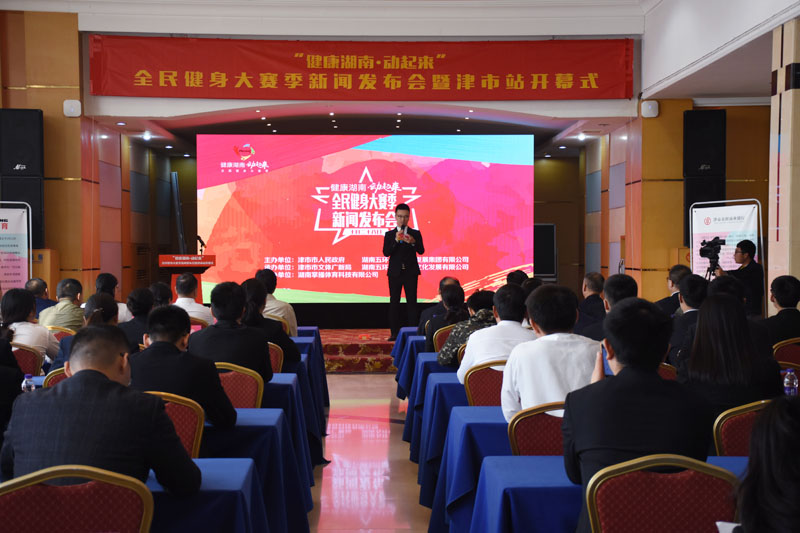 陈彬董事长在致辞中表示:“健康湖南·动起来”全民健身大赛季在此背景下应运而生,五环集团依托已在省内县域铺开建设中小型全民健身中心,在供给侧和需求侧两端共同发力,通过打造一系列全民参与、高度娱乐、惠民利民的“定制赛事”,将大赛季打造成城市的主场,为人民群众提供有个性、有特色、有创新的体育服务,为湖南全民健身事业的繁荣发展及建设健康湖南、幸福湖南贡献新力量。我们与津市市人民政府成功牵手,将“健康湖南·动起来”全民健身大赛季首站落户津市,这是践行全民健身国家战略的重要举措,也是推进政企合作、区域合作、互利共赢的良好开端,更将为津市“建设澧水流域现代化的中心城市”提供强劲动力。
