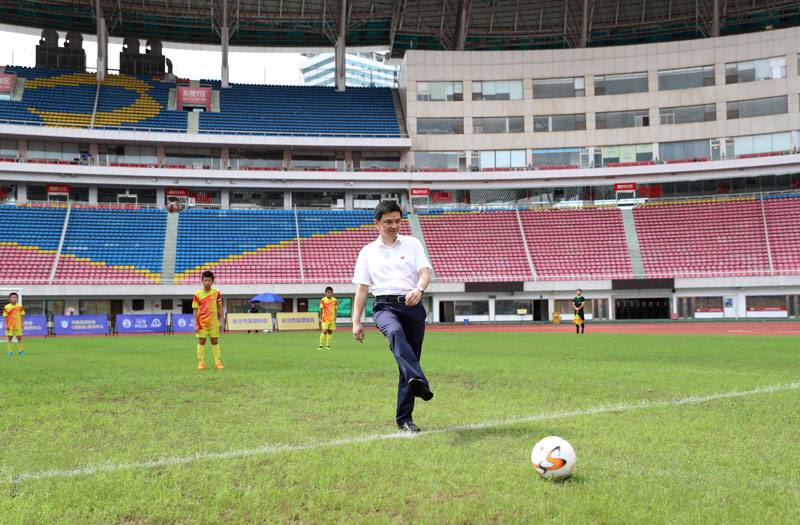 (图为湖南省体育局副局长熊倪为比赛开球。)