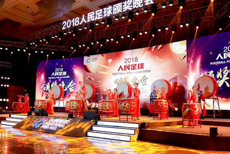 当日晚7:30分,颁奖晚会在慷慨激昂的开场鼓表演中准时开始。晚会以视频VCR播放、足球颠球表演、当事代表讲述、主持人临场采访、嘉宾颁奖等方式,全方位、多角度的向现场观众呈现了中国草根足球、社会足球等非职业化足球运动蓬勃兴旺的发展态势,用朴实的语言、感人的画面再现了我们身边真实的足球故事,讲述了一个个基层足球人不平凡的足球梦想。