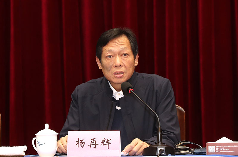 (图为湖南省体育局巡视员杨再辉在会上致辞。)