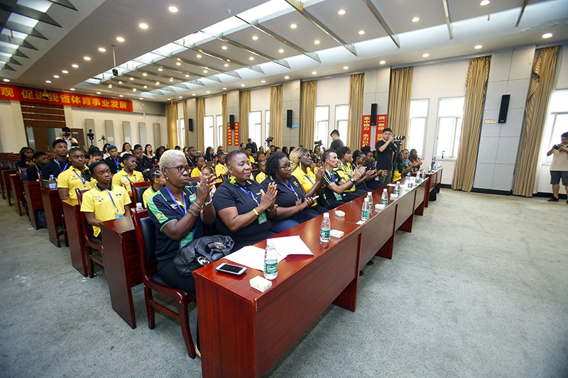 7月13日上午,2019年“援牙买加花样游泳和羽毛球等体育教练技术援助项目”欢迎仪式在湖南训练基地隆重举行。湖南省体育局副局长熊倪,中国体育国际经济技术合作有限公司总经理助理范凯,湖南体育产业集团有限公司总经理陈彬,湖南省商务厅法规和国际经贸关系处处长廖光辉,牙买加国家队来华训练总领队泰勒.罗伯特及牙买加来华运动员教练员出席仪式。欢迎活动在庄严肃穆的两国国歌声和升旗仪式中拉开帷幕。中方出席欢迎仪式领导和牙买加运动队领队分别发言,盛赞中牙友谊,预祝本次牙买加运动队来华训练取得丰硕成果。
