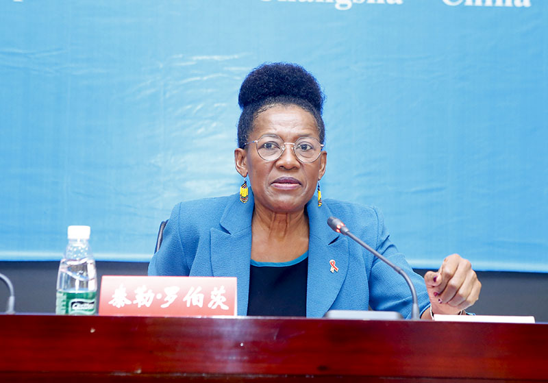 牙买加国家队来华训练总领队泰勒.罗伯特女士致辞。