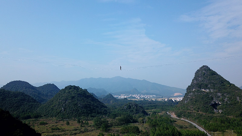 (图为高空极限走扁带项目精彩瞬间。 摄影:罗梦禅)