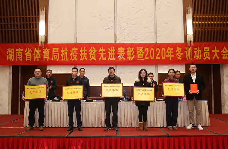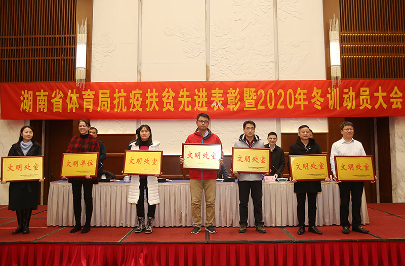 大会对省体育局抗击新冠肺炎疫情先进集体和先进个人、脱贫攻坚工作表现突出的事业单位和个人、文明处室(文明家庭、文明职工)进行了表彰。会议要求以他们为榜样爱国爱家、爱岗敬业,为推进湖南体育强省做贡献。