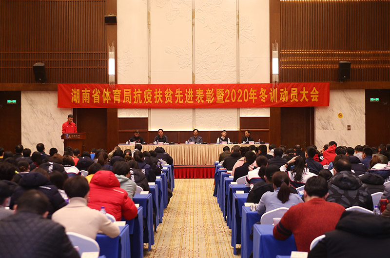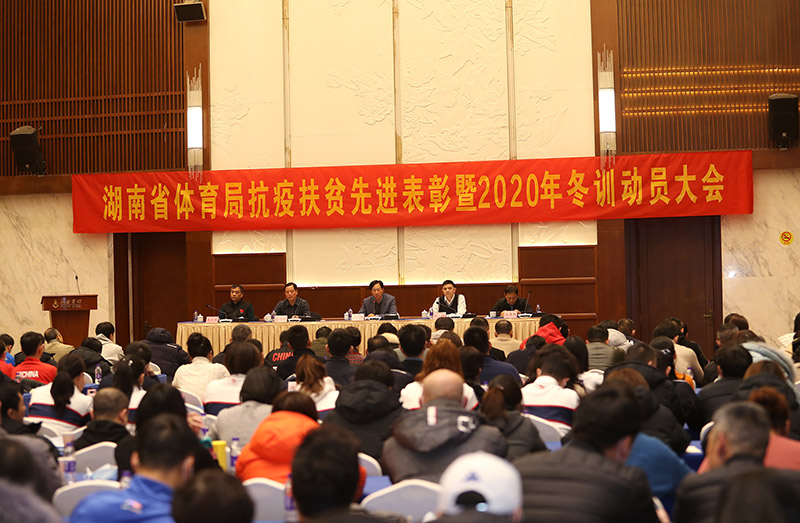 12月17日上午,湖南省体育局抗疫扶贫先进表彰暨2020年冬训动员大会在湖南宾馆举行。省体育局党组书记、局长李舜出席会议并讲话,出席会议的还有省体育局在职副厅级以上干部,机关各处室主要负责同志,各项目运动管理中心主要负责人和班子成员,受表彰处室、单位的代表和个人,备战办全体成员以及教练员、运动员、科研人员、领队、队医等200余人。会议由省体育局党组副书记、副局长熊倪主持。