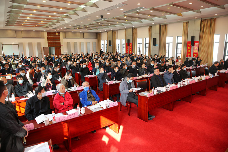 (图为会议现场与会代表举手表决。)