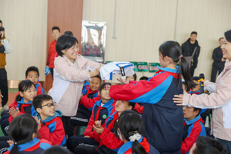 冠军故事传递着体育湘军精神,也凝聚着奋斗的力量。宣讲结束后,龙清泉、李晓璐与同学们在操场上进行了点球大战、长绳接龙、短绳竞赛等互动。
