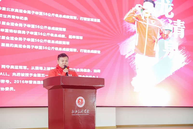 北京奥运会、里约奥运会举重冠军龙清泉,花样游泳世界冠军李晓璐与同学们分享了人生故事,传递了体育湘军精神。湖南省体育局二级巡视员贺训鹏,湖南省教育厅体育卫生与艺术教育处处长贺照,韶山市人民政府副市长彭乐,韶山市文旅广体局党委书记、局长郭卫国,韶山市教育局党委委员、主任督学李红波,长沙市雨花区砂子塘小学党总支副书记、校长刘军辉,湖南体彩追梦人鲍庆平等领导嘉宾出席。