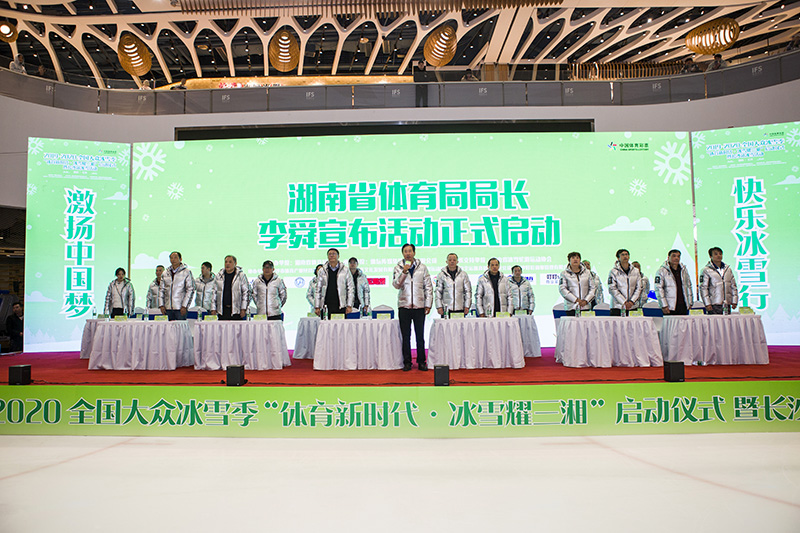 2019年12月21日下午,2019-2020全国大众冰雪季“体育新时代•冰雪耀三湘”启动仪式暨长沙站冰雪活动在长沙国金中心大零冰场隆重举行,来自全省由150名冰雪运动爱好者组成的8支队伍参与了长沙站冰雪活动的比赛。