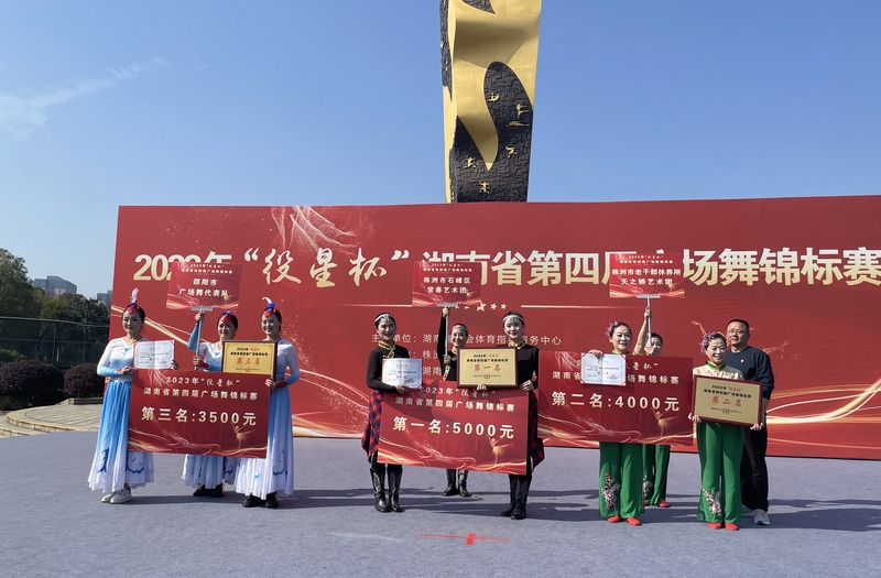经过激烈角逐,株洲市石峰区常春艺术团获得冠军,株洲市老干部休养所天之娇艺术团、邵阳市广场舞代表队、湘潭市岳塘区舞之星艺术团、长沙市群众艺术馆卓越·索尔代表队、怀化市老干部(老年)大学艺术团分获第二至六名;株洲市天元区风景线艺术团、株洲市欢歌恋舞艺术团舞蹈队等获优胜奖。